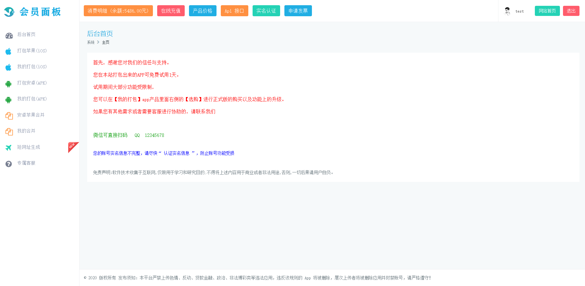 注:在使用本系统时,使用方必须在国家相关法律法规范围内并经过国家相关部门的授权许可,禁止用于一切非法行为。使用用途仅限于测试、实验、研究为目的,禁止用于一切商业运营,本站不承担使用者在使用过程中的任何违法行为负责。