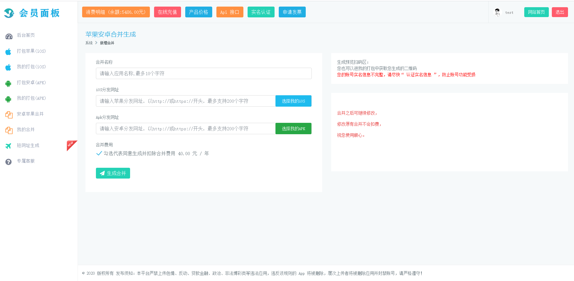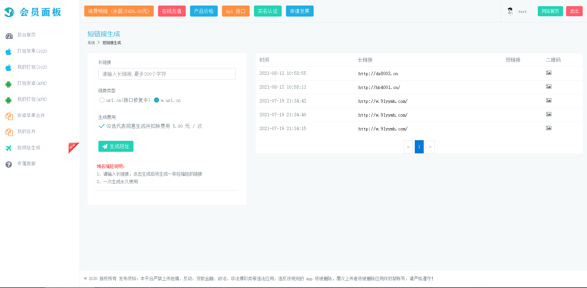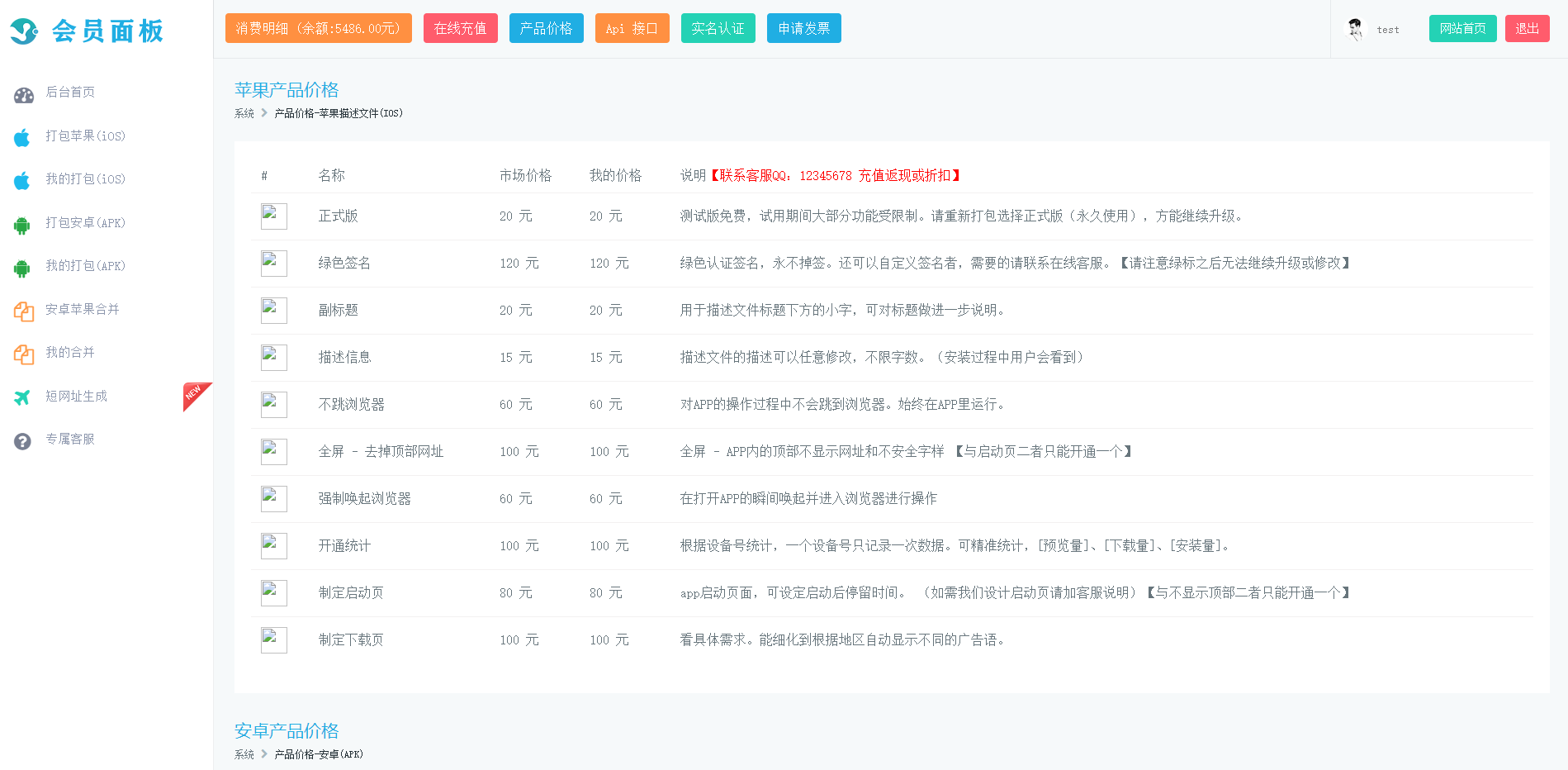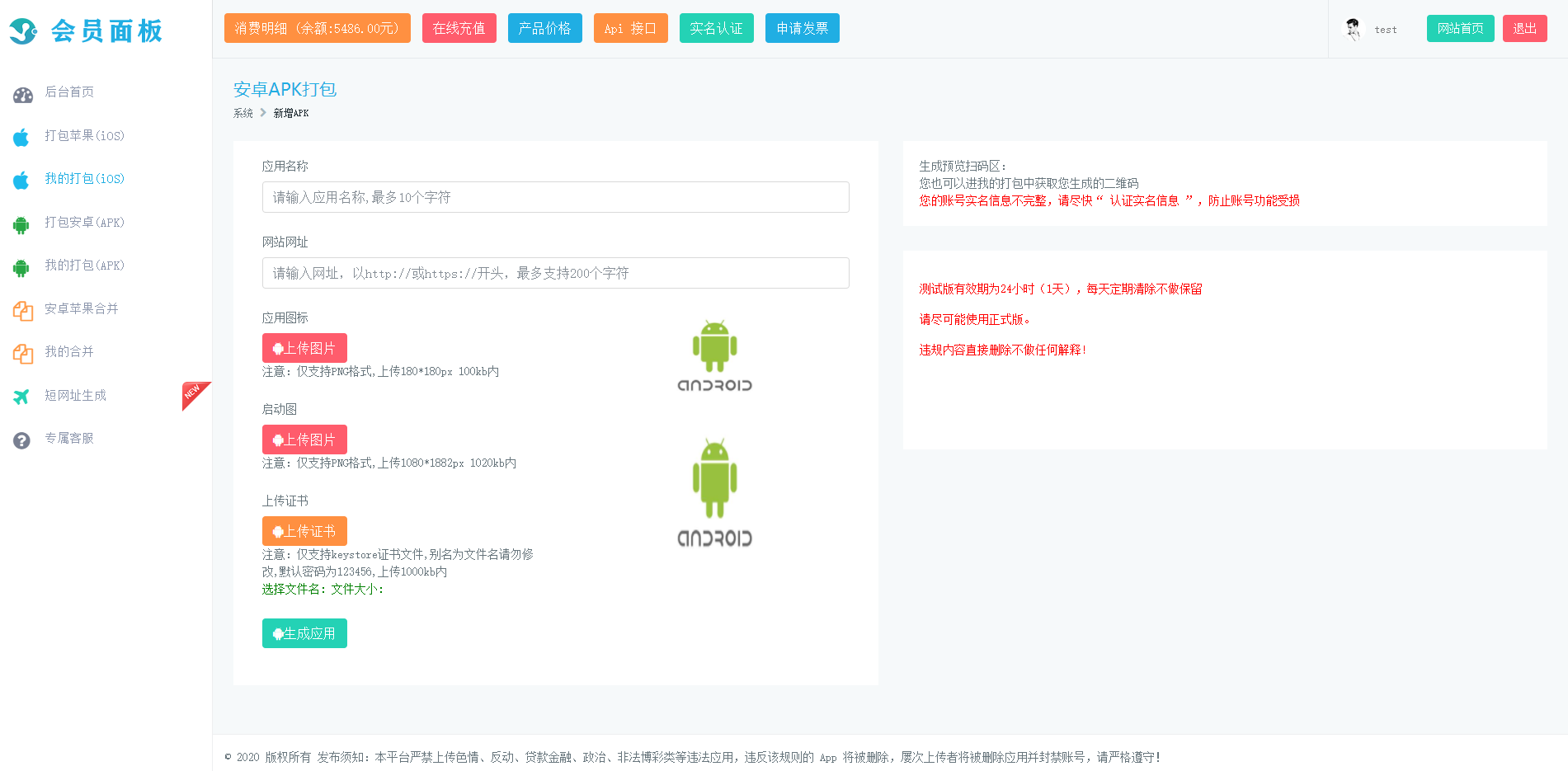 封装的时候可以选择指定图标,apk名字,apk运行时候启动画面(可更换)提供短链接和下载二维码,方便下载测试