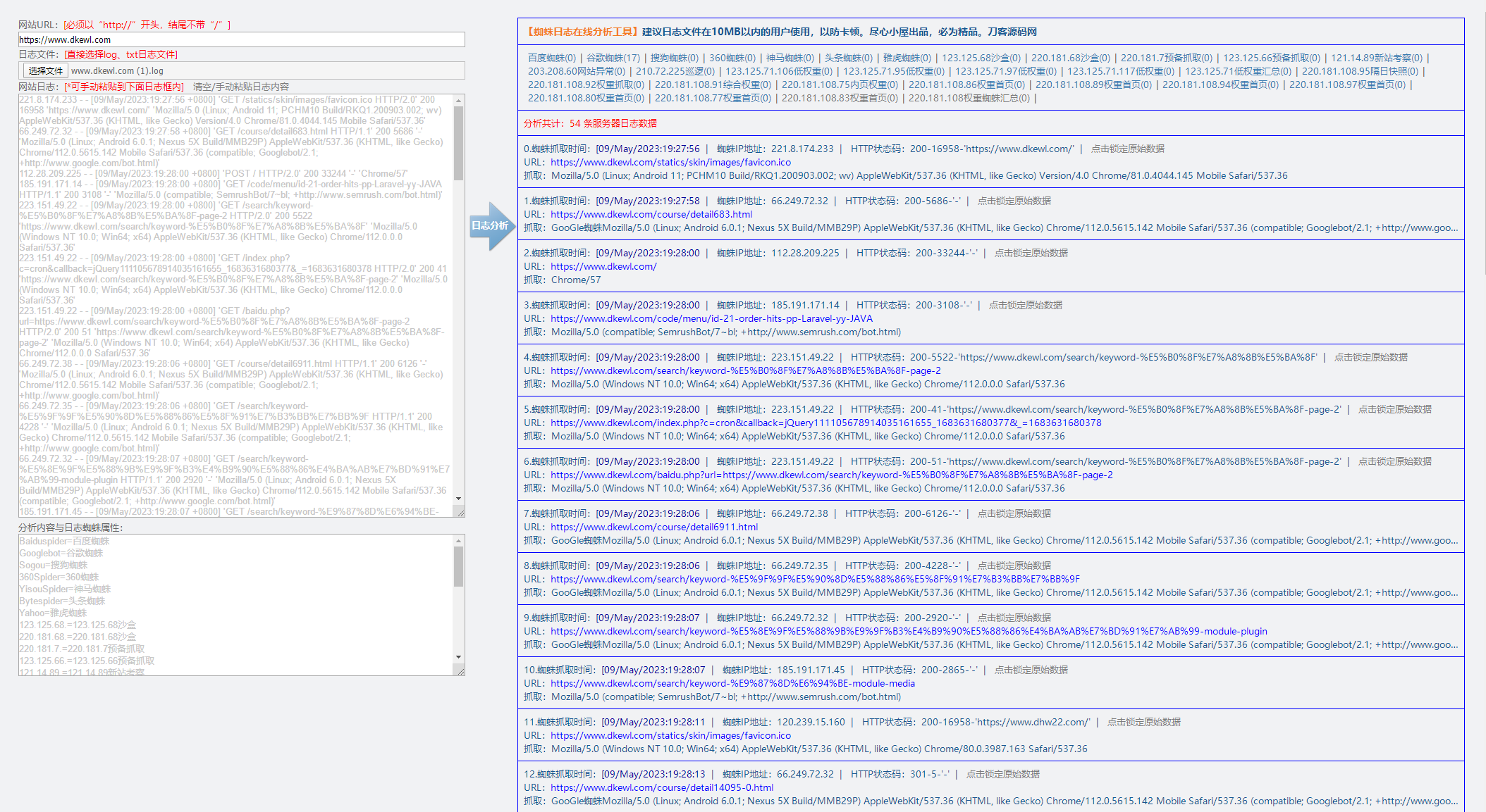 如果是 linux 宝塔面板 的服务器自然环境,大家登陆宝塔面板linux控制面板后,点一下左边“文件”,在www下的wwwlogs文件目录中就能见到网站访问日志了, ps:经实测,Windows系统的服务器沒有日志记录功能。 将网址日志全部內容拷贝到左边,随后点一下剖析按键,就能便捷的查询搜索引擎网络爬虫的抓取记录了。